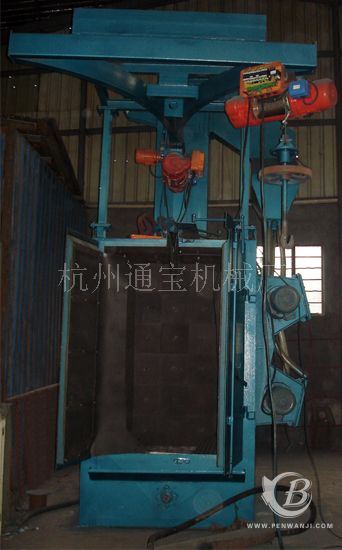 來(lái)自歐洲馬其頓國(guó)家的客戶(hù)在我司定做的雙鉤吊掛式拋丸機(jī)現(xiàn)已制作完成,驗(yàn)收調(diào)式完畢;設(shè)備已發(fā)給客戶(hù)使用。雙鉤吊掛式拋丸機(jī)的 工作原理:需拋丸處理的工件直接懸掛在吊鉤或掛架上,人工帶至拋丸室前部的牽引系統(tǒng),吊鉤自動(dòng)進(jìn)入拋丸室;吊鉤進(jìn)入拋丸室后,拋丸室門(mén)將氣動(dòng)關(guān)閉,電氣聯(lián) 鎖,以避免工件在拋丸室內(nèi)進(jìn)行拋丸處理時(shí)他人誤開(kāi)拋丸室門(mén);吊鉤進(jìn)入拋丸室在設(shè)定的區(qū)間位置作來(lái)回往復(fù)運(yùn)動(dòng)和自轉(zhuǎn),使工件受到充分拋丸,減少拋丸死角;二 個(gè)吊鉤/一個(gè)吊鉤在拋丸室內(nèi)拋丸,另一個(gè)吊鉤可裝卸工件;拋丸處理的時(shí)間可任意調(diào)整。拋丸器停止運(yùn)轉(zhuǎn)后拋丸清理室門(mén)打開(kāi),以帶進(jìn)和帶出工件;拋丸處理中產(chǎn) 生的粉塵由二級(jí)除塵器過(guò)濾排放。