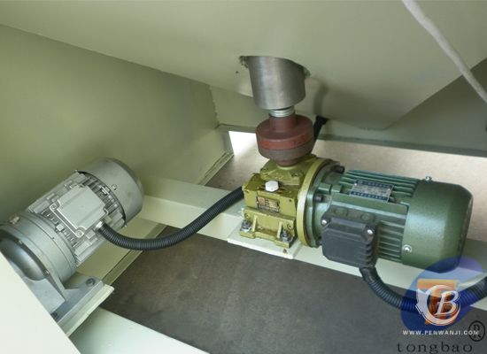 帶動工作的電動馬達,左邊銀白色馬達為控制自動搖擺噴槍所置,右邊綠色為控制主工作轉盤