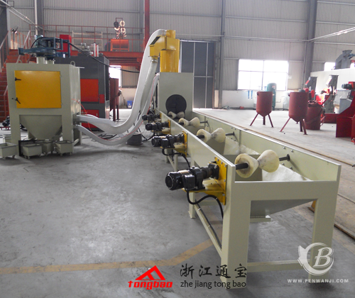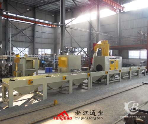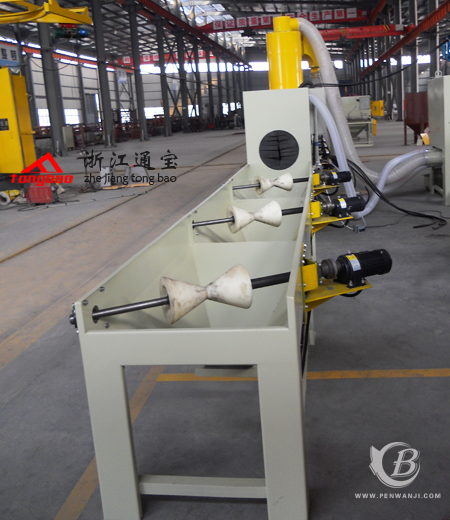 寧波客戶生產(chǎn)的鋼管外壁專用噴砂機(jī)已生產(chǎn)完成,該機(jī)采用電動(dòng)馬達(dá)傳送噴砂處理產(chǎn)品,電動(dòng)馬達(dá)配置專用減速器,可自由調(diào)節(jié)控制處理速度;內(nèi)