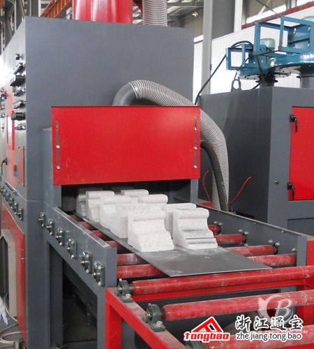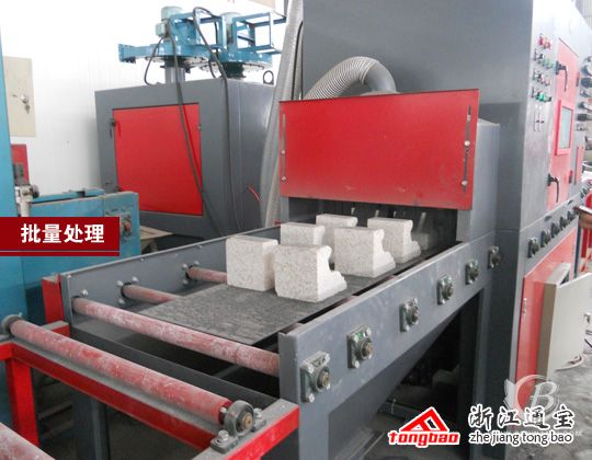 杭州通寶機(jī)械:某公司定購的非標(biāo)型石材輥道通過式噴砂機(jī)目前已交付使用;設(shè)備采用輥道滾軸式傳輸原理,機(jī)身單軸配置串聯(lián)式獨(dú)立鏈條齒輪,運(yùn)轉(zhuǎn)更平穩(wěn)。工作艙內(nèi)部采用10把高效能噴槍,自動(dòng)搖擺式噴砂作業(yè),處理更全面,同時(shí)體現(xiàn)了“升級(jí)表面 輕松擁有”的口號(hào)。