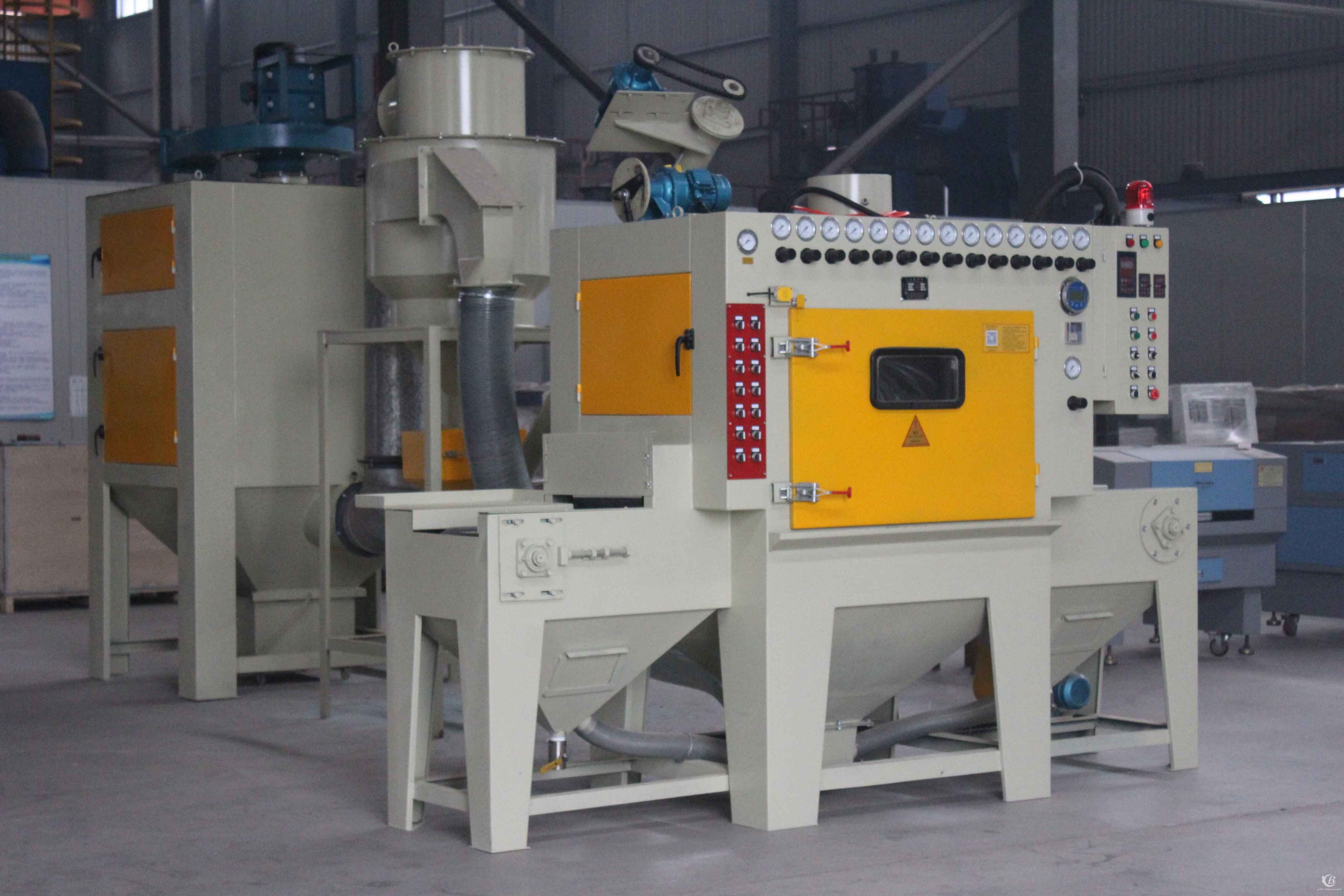 ? 采用多槍噴砂,噴砂角度可任意調(diào)節(jié);操作時,僅需將工件置于輸送帶上,即可進行自動噴砂加工,操作十分簡單方便 .