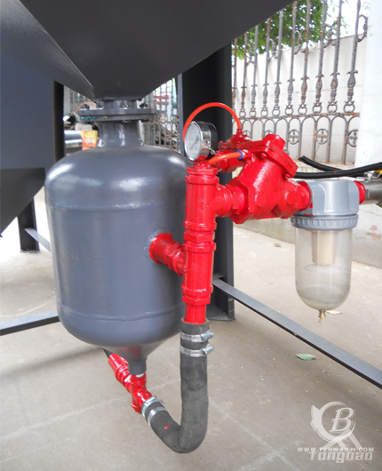 ![]() 推車轉(zhuǎn)臺保壓式噴砂機 ![]() 高壓罐體(保壓罐) ![]() 保壓型噴砂機設(shè)備平面解析圖 本系列高壓噴砂機特點:設(shè)備采用壓力壓送式直接加速噴射砂料,砂料撞擊點較深,加工速度較旋風(fēng)式噴砂機的加工速度更高更快,約為1~3倍左右。砂材可自動回收,從而提高了砂材的使用率。
