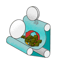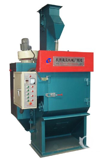 將工件放入橡膠履帶滾筒中,操作人員按下“運行”按鈕,拋丸室門氣動關(guān)閉,拋丸清理開始,履帶向前運行,工件不斷地進行翻滾,高效強力拋丸器將拋丸高速拋 射到正在翻滾的工件表面上,工件可完全均勻地得到清理。鋼丸通過履上的溜孔流入螺旋輸送機,再將鋼丸輸送到斗式提升機,經(jīng)斗式提升機提升到分離器,被分離 后存儲待用。拋丸結(jié)束后拋丸室門自動開啟,履帶反轉(zhuǎn),將工件缷出。